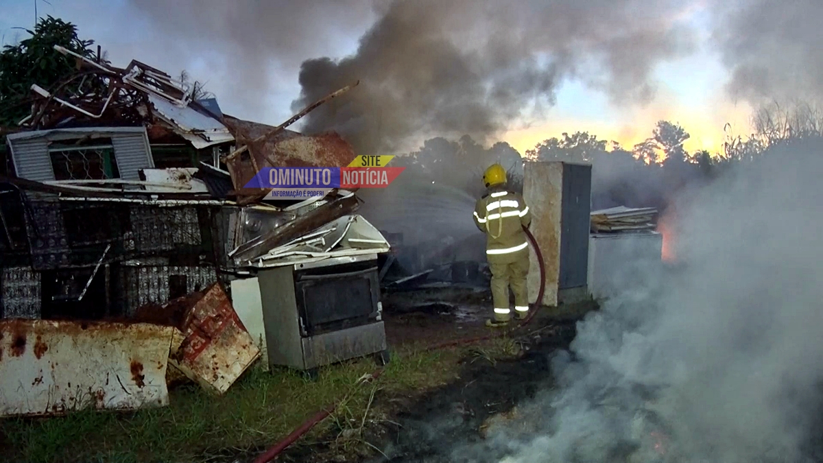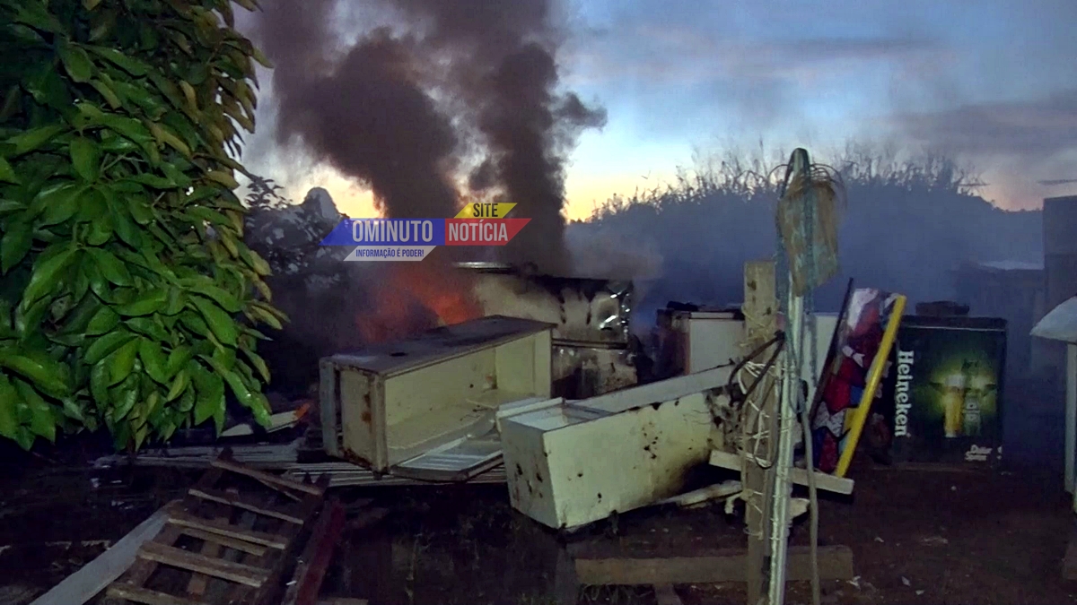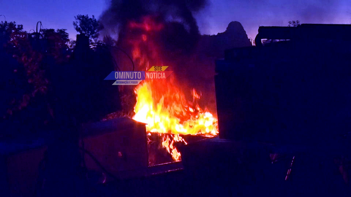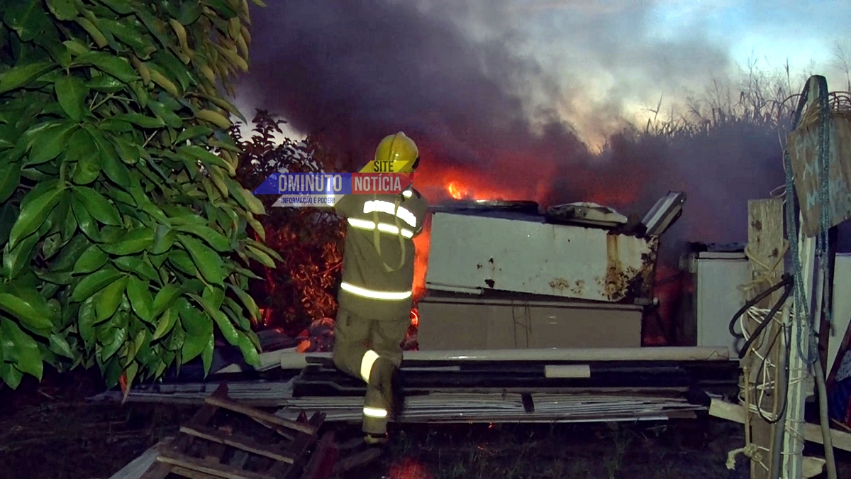 As imagens mostram um cenário de intensa fumaça e fogo se alastrando rapidamente pelo local, o que exigiu atuação imediata dos bombeiros para conter o avanço das chamas e evitar que o incêndio atingisse residências próximas. A ocorrência também contou com o acompanhamento da Polícia Militar.