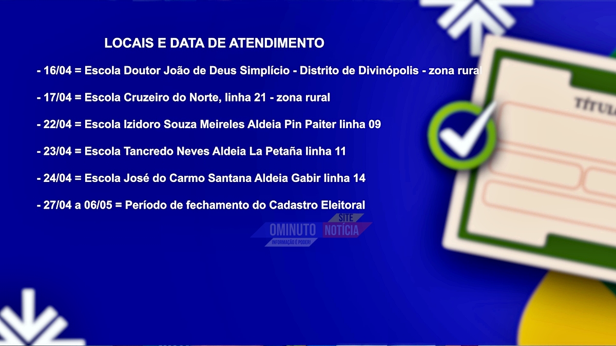 A Justiça Eleitoral alerta que o prazo para regularização do título se encerra no dia 6 de maio, de 2026. Após essa data, o cadastro será fechado em todo o país para organização das eleições, impossibilitando alterações até a reabertura do sistema.