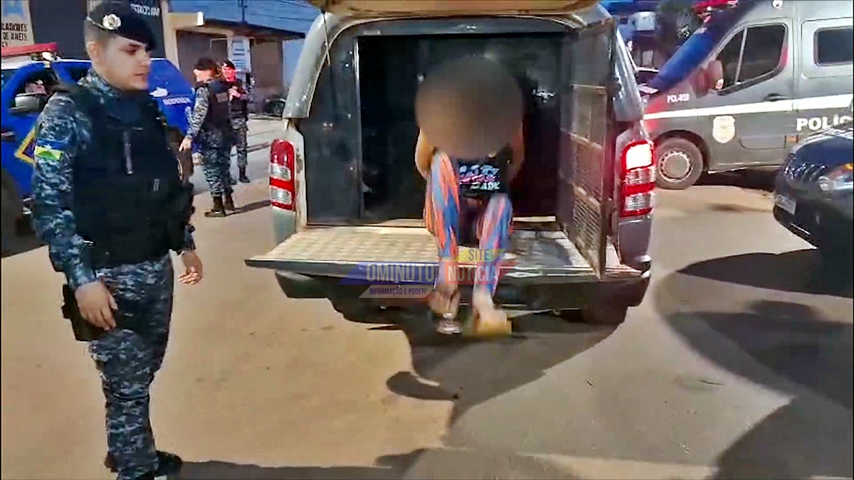 A Polícia Militar foi acionada e, ao chegar ao local, encontrou a suspeita em estado de grande exaltação. Diante do risco iminente à integridade física das vítimas, os policiais precisaram utilizar algemas para contê-la.