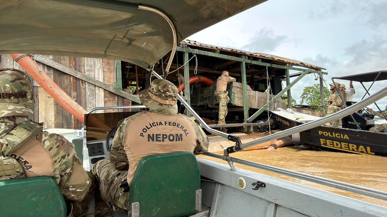Porto Velho/RO. A Polícia Federal, em ação conjunta com a Delegacia de Combate a Crimes Ambientais (DMA) e o Instituto Brasileiro do Meio Ambiente e dos Recursos Naturais Renováveis (IBAMA), realizou a Operação Iterum II, deflagrando ação de combate ao garimpo ilegal no leito do Rio Madeira, em Rondônia.